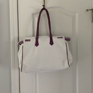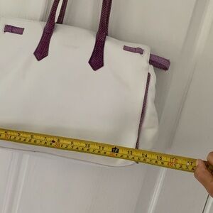 Tosca Blu Shoulder Bag white purple with flowers appliqué snake texture details