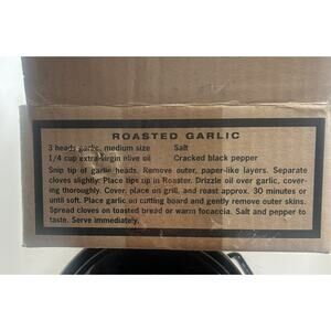 Roast whole garlic heads to perfection with this Toscana Barbecue Garlic Roaster by AMCO (1995). This vintage garlic roaster is made of sturdy black enamel-coated steel and features a perforated base and lid for ideal airflow. Great for stovetop, oven, or barbecue use. Includes original box and instructions on the side.