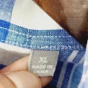 Toscana Firenze 100% Linen Button down Short sleeve Plaid Men's Shirt XL 7057
