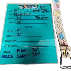 Toscana Tooled Leather Belt SZ 33 Floral Womens White Pastel Boho Western Hippie