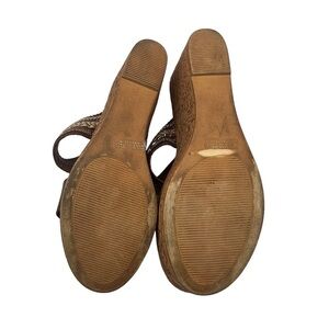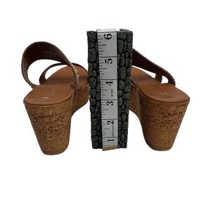 Toscanella Brown Gold Double Banded Platform Wedge Sandals Size 9 Women's