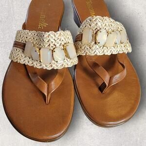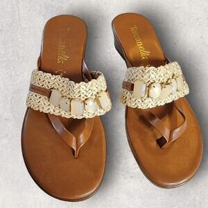 Toscanella Brown Thong Wedge Heel Sandals 8 Slip On Jeweled Made in Italy