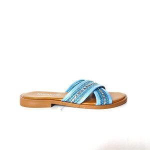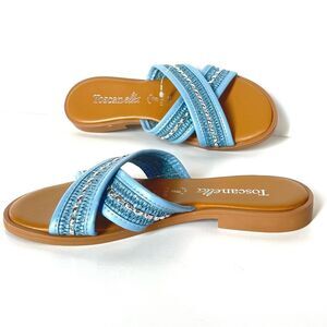 Toscanella Italian Sky Blue Embellished Boho Comfort Slide Sandals SZ 8.5