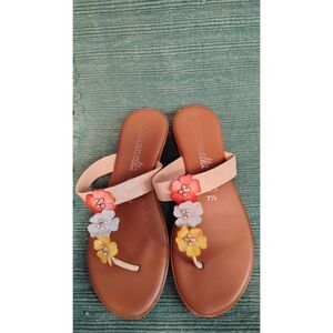 Toscanella Made In Italy Womens Nana Low Wedge Floral Thong Sandal Size 7.5