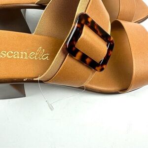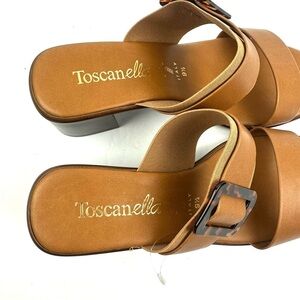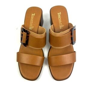Toscanella Sandals 9.5 Cognac Brown Made In Italy Slip On Tortoise Buckle New