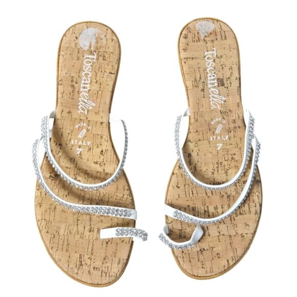Toscanella Womens Slip On Sandals Size 7 Summer Glitter Neutral Glam Sparkly