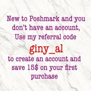New to Poshmark and you don’t have an account! Use my referral code GINY_AL to create an account and save 15$ on your first purchase.