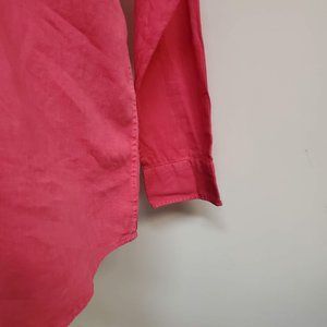 Toscano Aqua / Men's / long sleeve with option to roll up / 100% linen / spread collar / button up / shirt tail hem / single breast pocket / pre-owned / gently worn / cleaned and sanitized / smoke free home / see photos for signs of wear