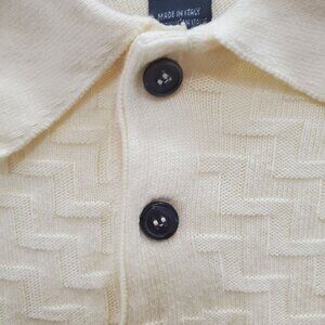 Toscano Men's Vintage Yellow Cotton Blend Textured Zig Zag Polo Shirt Italy Sz L