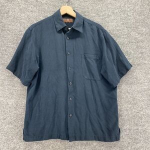Toscano Shirt Men S Small Blue Button Up Collared Silk Short Sleeve Pockets
