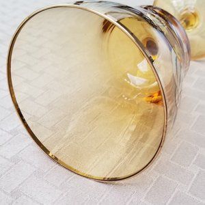 Toscany 4 Vintage Romania Gilded Gold Rose Boho Amber Stemware Glasses.