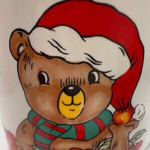 Toscany Collection Teddy Bear in Santa Hat, Christmas Mug/Cup Stoneware 1980s VTG