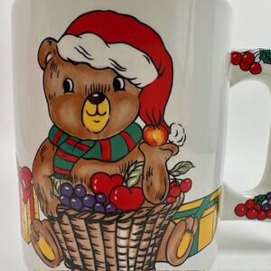 Toscany Collection Teddy Bear in Santa Hat Christmas Mug/Cup Stoneware 1980s VTG