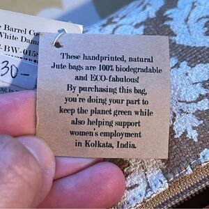 Toss Designs NWT Jute Barrel Cosmetic Bag White Damask