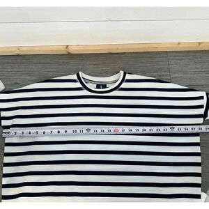 Toss Designs Small Nautical Blue & White Striped 3/4 Sleeve High-Low Sweater