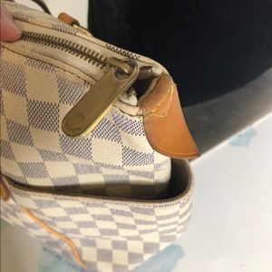 ❤️ no cracks on canvas, some usage on shoulder straps. Honey patina. Some wear/ minor fading on top of the bag, canvas and zipper.