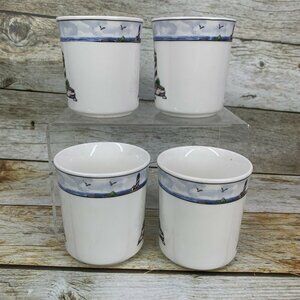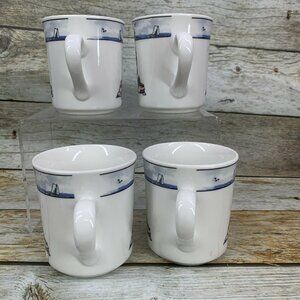 Totally Today COASTAL LIGHTHOUSE Center & Rim Stoneware 8 oz Cups Mugs Set of 4