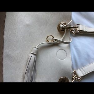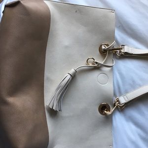 Large tote faux leather two tone. Shoulder or handle.