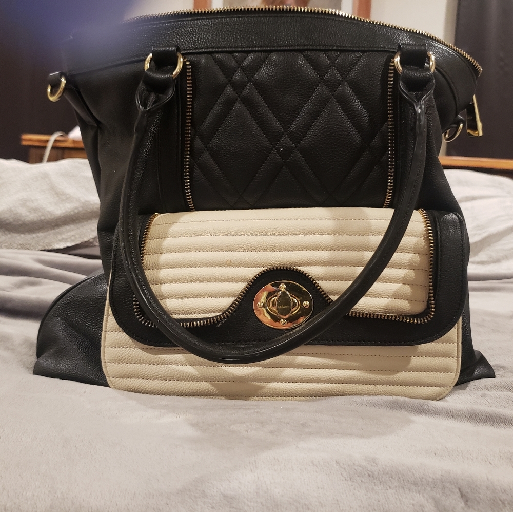 Black and cream tote / purse very deep alot of pockets inside and front pocket its 14" in height an 18" across will take offers
