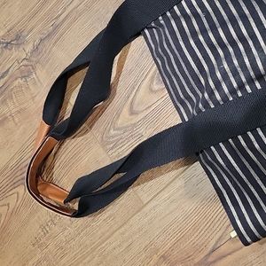 black tote with sparkley gold stripes. one deep pocket.
