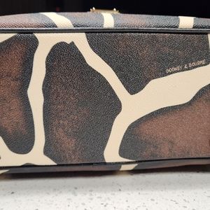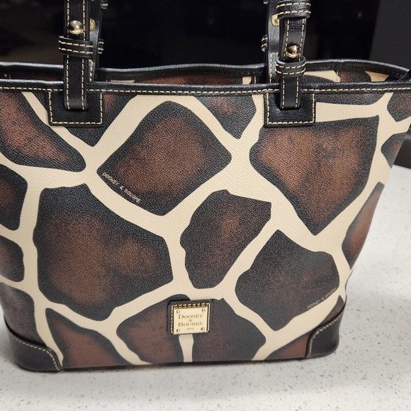 This handbag is soooo fun! It's leather with a beautiful red lining that has many compartments! The keyfob attachment is a must as is the full zip closure! It is in barely used condition! This bag needs to be shown off!