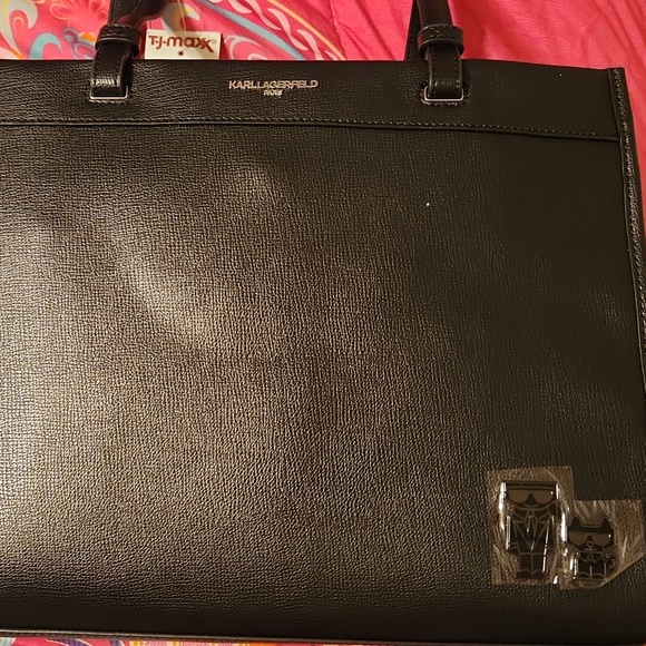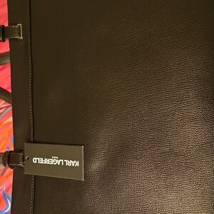Karl lagerfeld black leather large tote bage silver hardware comes with dust bag