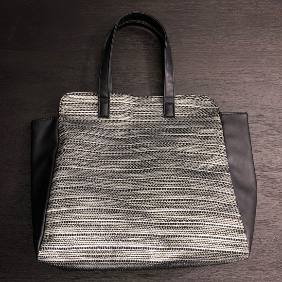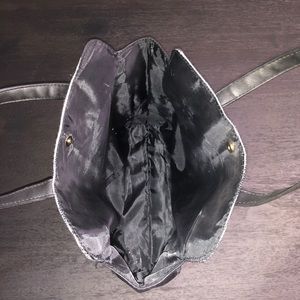 Brand New, Never used tote bag with snap close. Black with silver tinsel like front and back