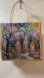 This handmade tote bag features a beautiful diamond art pattern with a cute theme. The bag is made of canvas material and has a beige exterior color. The bag has a square shape with a depth of 9 inches, a height of 10 inches, and a width of 10 inches . The double handles add to its functionality and style.