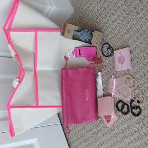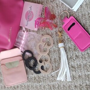 New, never used mini Wet brush, pink butterfly hair claw clip, pink keychain, white tassel clip, set of 6 bra strap holder and invisible tape