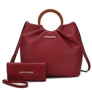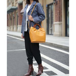 Tote Bag Set, Vegan Leather Circular Wooden Top-Handle Shoulder :3