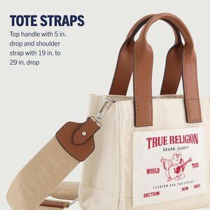 Product details Fabric type Cotton,Mesh,Polyester Origin Imported Closure type Snap Lining Polyester About this item SIDE BAG: This tote handbag features a stylish and fashionable aesthetic with a striking silver hardware design and large logo, making it perfect for work, beach trips, the gym, or traveling EASY PORTABILITY AND STORAGE: Canvas bag features a convenient removable and adjustable shoulder strap with a drop of 19 to 29 inches for ease of travel, top carrying handle with a 5 inch drop, a spacious main compartment with a front slip po
