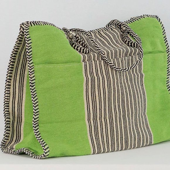 Showroom floor sample new condition with tags, loomed by hand jute cotton, cotton lining, interior pockets + interior zippered pocket, exterior pockets for water bottle, all part of our program to sponsor indigent women in India who live below the poverty line, done on traditional looms, make a real difference in someone's life today!