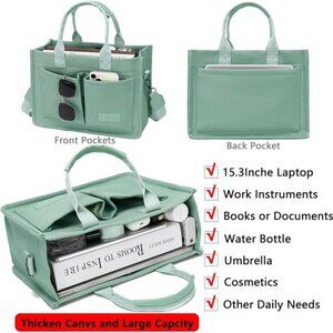Durabiliy and Large Capacity:Made of high-quality canvas and lining polyester fabric that is rugged,water-resistant,lightweight,and easy to clean.Perfect stitching help maintain its shape well even full loaded.Large capacity can fit 15.3" laptop or tablet and all your essentials,suitable for work,daily use,student and travel.
