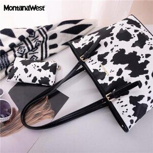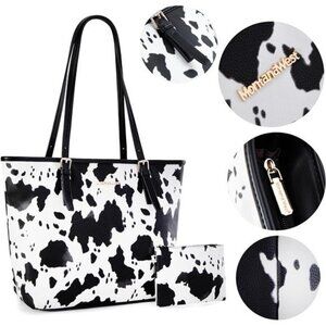 Tote Bags Vegan Leather Purses and Handbags for Women Cow Print Black