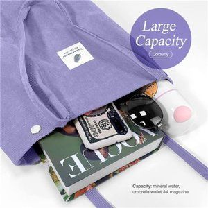 🧿LARGE CAPACITY TOTE BAG CORDUROY: 12.5×4.3×15.3inch, the shoulder strap is 12.5inch. Simple design with solid color, comfortable and durable.