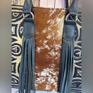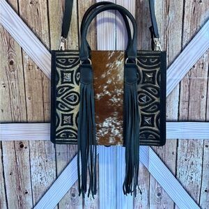 Tote Hair on Genuine Leather Western Hand Bag / Black and Ten Shoulder Bag (H)