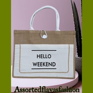 This (Hello Weekend) tote bag is a must have for any season and/or occasion.