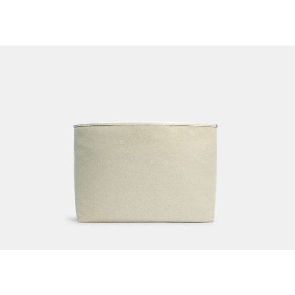 Canvas and smooth leather Inside zip snap and open pockets Two elastic pockets for standard size water bottles Inside sleeve with secure tab for 13 laptop Fabric lining 13 (L) x 9 1/2 (H) x 6 1/4 (W) Compatible with City Tote and Court Tote Style No. C4812