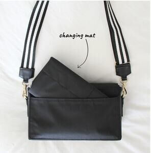 Part changing kit and part crossbody bag––a hybrid design helping you keep your hands free so you can easily access a diaper, a wet wipe, or anything else you need at that moment.