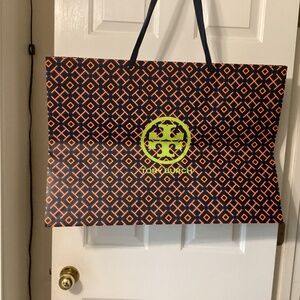 Do you have a special Tory Burch gift to give someone and need a special bag to put it in… Here’s your solution! This is an extra extra large Tory Burch tote bag with ribbon handles and the lime green Tory Burch symbol. Maybe you just want to have a Tory Burch presentation behind your Poshmark show. This is big enough to display in a frame if you so choose. Many many uses for this back. Price to sell to clear out of closet.