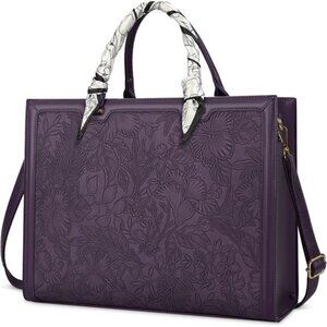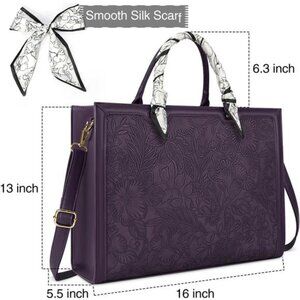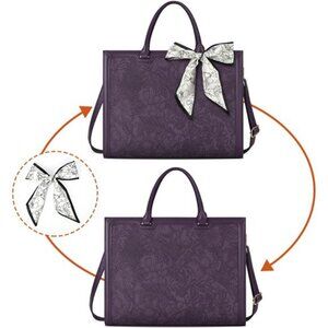 This women laptop bag is made of durable, waterproof, scratch-resistant PU leather and polyester lining. The smooth metal zipper on the top makes it easy to open. The sturdy handle and metal accessories make the tote bag more durable. And it has a detachable elegant silk scarf ornament attached in the front of this black professional briefcase. The metal feet can protect your laptop bag from damage.