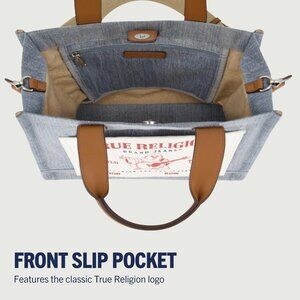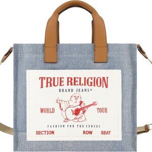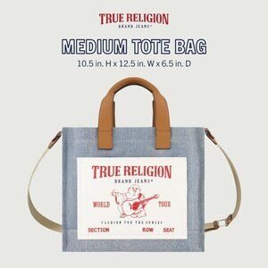 SIDE BAG: This medium size denim tote handbag features a stylish and fashionable aesthetic with a striking silver hardware design and large logo, making it perfect for work, beach trips, grocery shopping, the gym, or traveling