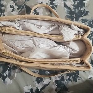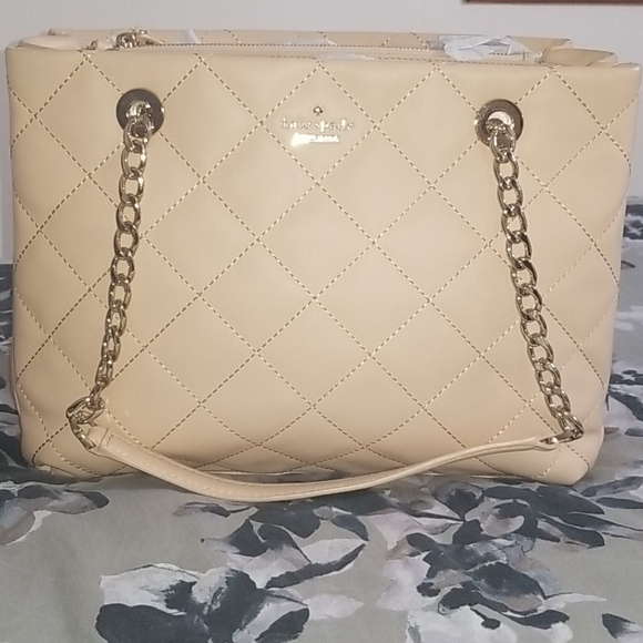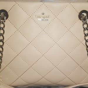 Quilted cream kate spade tote bag. Large enough to hold a lap top. Multiple compartments.