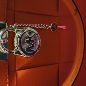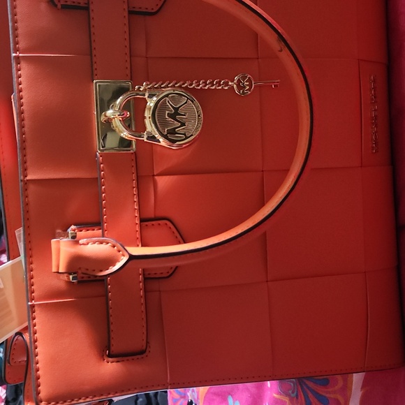 MICHAEL KORS SATCHEL WOVEN LEATHER TOP HANDEL AND CROSSBODY STRAP HOLD HARDWARE POPPY IN COLOR