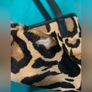 EUC Totem Salvaged cowhide exterior/ denim interior tote. Black leather trim and straps. Balding at two areas at corners (See photos).