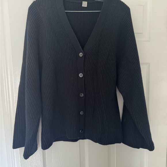 Toteme Black Ribbed Button-Up Sweater