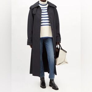 Toteme Signature Stripe Turtleneck Wool Cotton Oversized Knit Sweater Top Blue