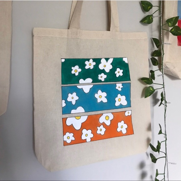 100% cotton vintage tote bag with hand painted Size: 15x16