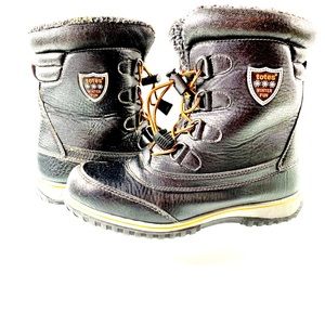 He sure too conquer his winter adventures in the fleece lined snow boot from Totes. The insulated lining will keep him comfortably warm while playing in the cold snow. In outstanding condition from pet & smoke free home.
