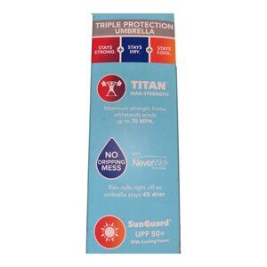 Maximum strength frame withstands winds up to 70mph to prevent umbrella inversion Sunguard - Superior sun protection technology blocks up to 98% of harmful UVA rays and keeps you up to 30º cooler